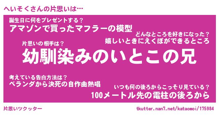| 意味不明あだ名 | 『ペロリンへいそく』『永久保存へいそく』 |