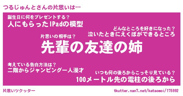 | 男性向けラノベタイトル風あだ名 | 『つるじゅんとの憂鬱』 |