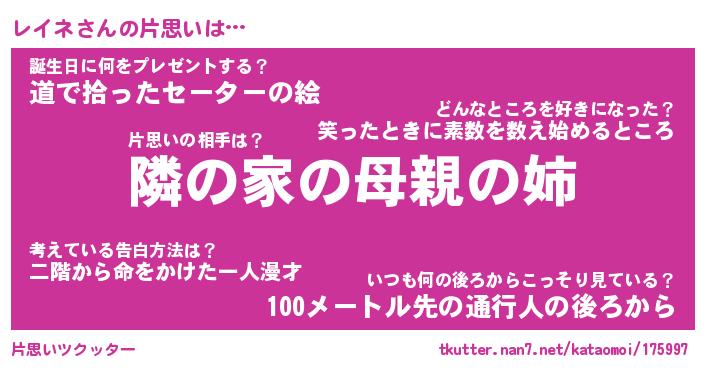 | ヘコむあだ名 | 『レイにー』『豆乳』『レイぷりん』 |