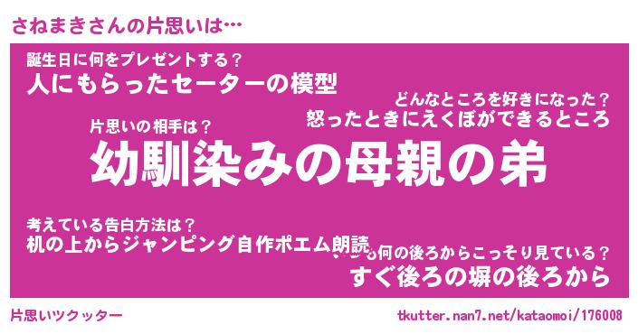 | 意味不明あだ名 | 『ペロリンさねまき』『永久保存さねまき』 |