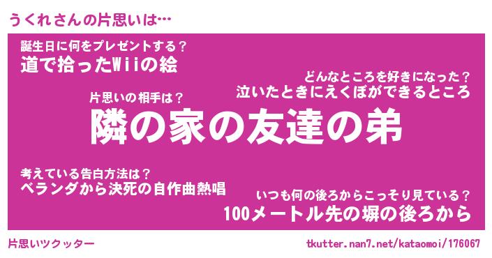 | 自動車の名前っぽいあだ名 | 『プリウク』『ウクア』『デミウ』 |