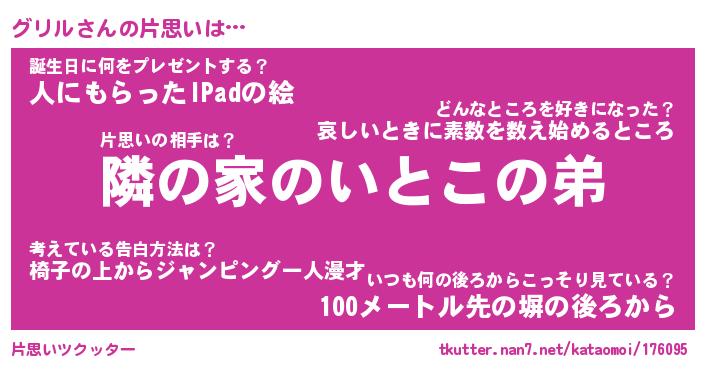 | 男性向けラノベタイトル風あだ名 | 『グリルの憂鬱』 |