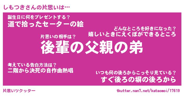 | ヘコむあだ名 | 『しもにゅー』『豆乳』『しもお』 |