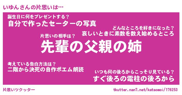 | ヘコむあだ名 | 『いゆふぇ~』『つくし』『いゆ太郎』 |