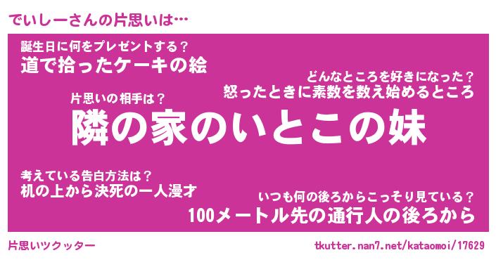 | 胡散臭い通販商品みたいなあだ名 | 『モテモテ間違いなし水晶球…その名も「でいしー」』 |
