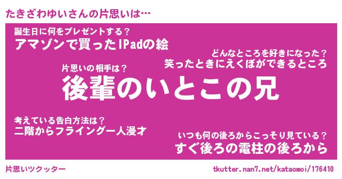 | ヒーロー風カッコイイあだ名 | 『スーパータキザワユイ』『幻影騎士タキ』 |