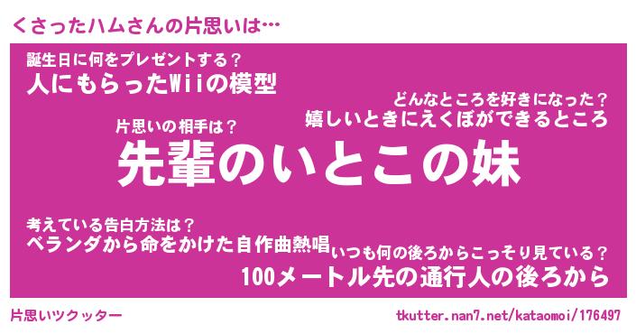 | ヒーロー風カッコイイあだ名 | 『スーパークサッタハム』『暗黒騎士クサ』 |