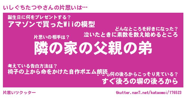 | 女子向けラノベタイトル風あだ名 | 『(仮)いしぐちたつやのやんごとなき事情』 |