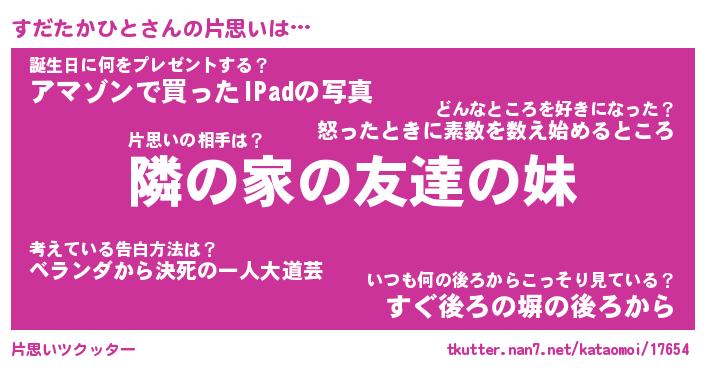 | 胡散臭い通販商品みたいなあだ名 | 『必ず成功する霊験あらたかなお札…その名も「すだたかひと」』 |