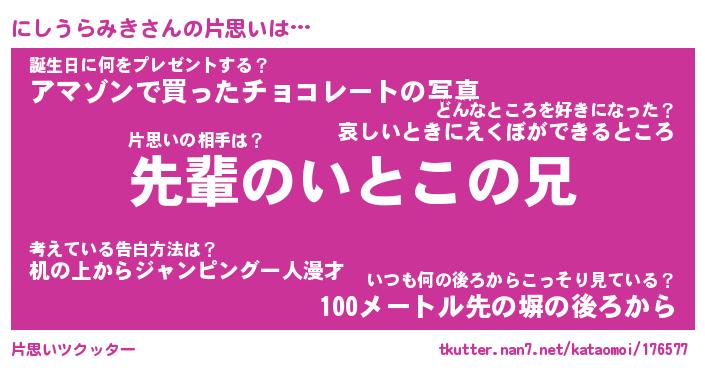 | 胡散臭い通販商品みたいなあだ名 | 『モテモテ間違いなし水晶球…その名も「にしうらみき」』 |