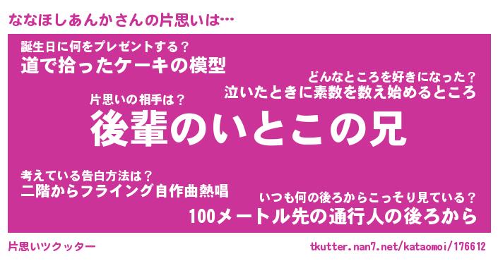 | ヘコむあだ名 | 『ななもー』『牛乳』『ななっちょ』 |