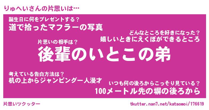 | 意味不明あだ名 | 『ペロリンりゅへい』『永久保存りゅへい』 |