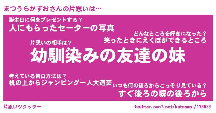 | 男性向けラノベタイトル風あだ名 | 『まつうらかずおの憂鬱』 |