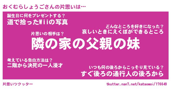 | 胡散臭い通販商品みたいなあだ名 | 『モテモテ間違いなし水晶球…その名も「おくむらしょうご」』 |