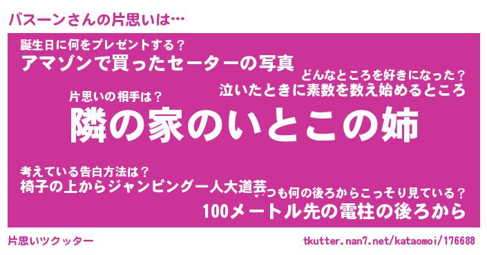 | ヘコむあだ名 | 『バスにゅー』『なまこ酢』『バスお』 |