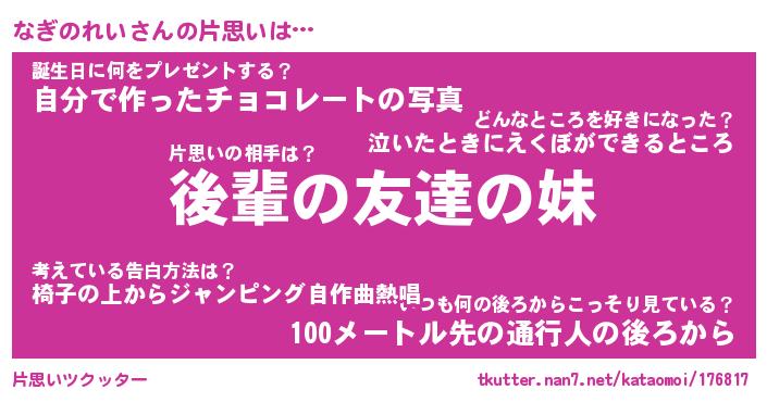 | 意味不明あだ名 | 『ペロリンなぎのれい』 |