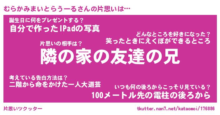 | 胡散臭い通販商品みたいなあだ名 | 『モテモテ間違いなし霊験あらたかなお札…その名も「むらかみまいとらうーる」』 |