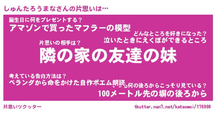 | 胡散臭い通販商品みたいなあだ名 | 『必ず成功する霊験あらたかなお札…その名も「しゅんたろうまな」』 |