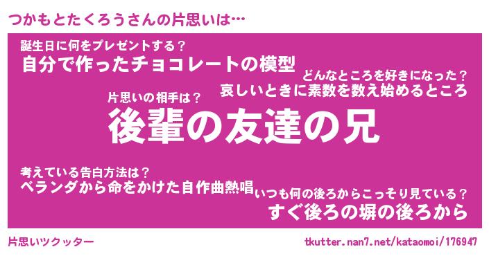 | ヘコむあだ名 | 『つかっふぃ~』『なまこ酢』 |