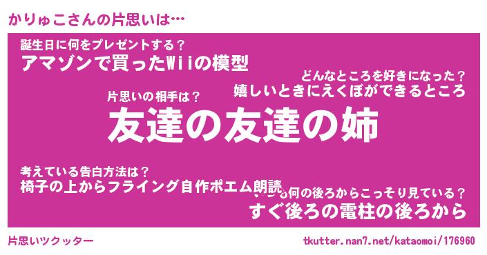 | 意味不明あだ名 | 『ペロリンかりゅこ』『永久保存かりゅこ』 |