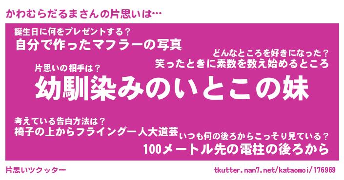 | ヘコむあだ名 | 『かわにゅー』『つくし』『かわを』 |