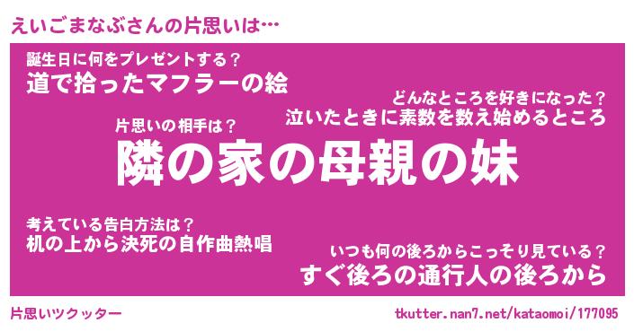 | ヘコむあだ名 | 『えいにー』『豆乳』『えいぷりん』 |