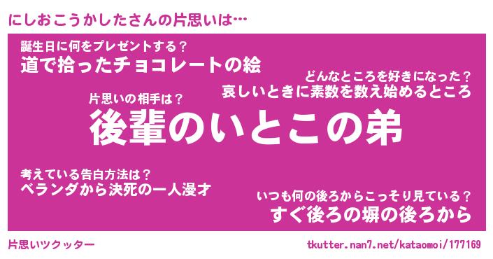 | ヘコむあだ名 | 『にしもー』『豆乳』『にしっぺ』 |