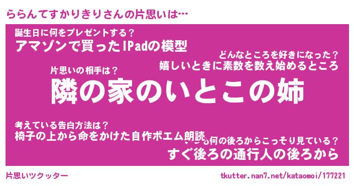 | 胡散臭い通販商品みたいなあだ名 | 『モテモテ間違いなし霊験あらたかなお札…その名も「ららんてすかりきり」』 |