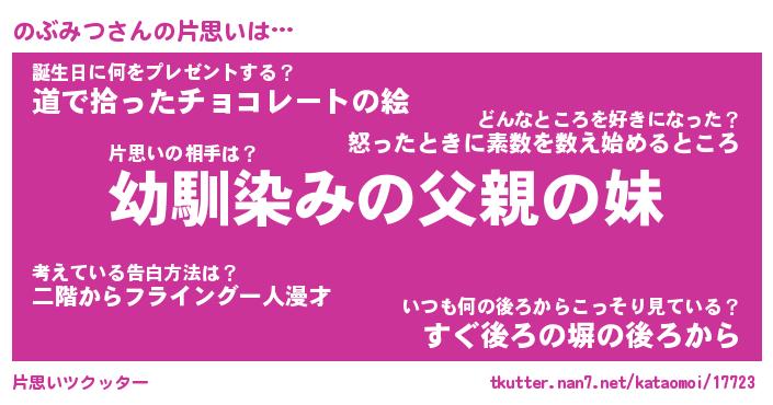 | 女子向けラノベタイトル風あだ名 | 『(仮)のぶみつのやんごとなき事情』 |