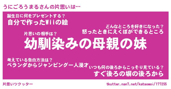 | 胡散臭い通販商品みたいなあだ名 | 『必ず成功するブレスレット…その名も「うにごろうまる」』 |