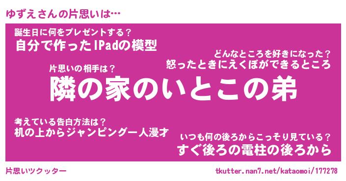 | ヘコむあだ名 | 『ゆずもー』『牛乳』『ゆずっぺ』 |
