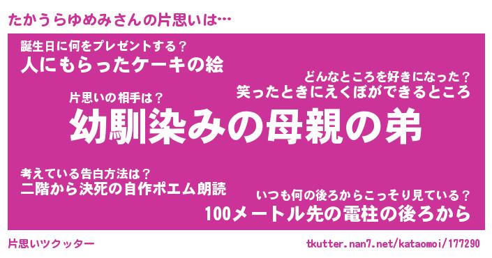 | 胡散臭い通販商品みたいなあだ名 | 『必ず成功するブレスレット…その名も「たかうらゆめみ」』 |