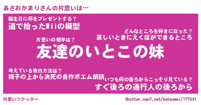 | ポケモン風あだ名 | 『アサチュウ』『アサオダネ』 |