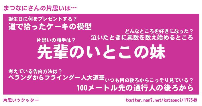 | 男性向けラノベタイトル風あだ名 | 『まつなにの憂鬱』 |