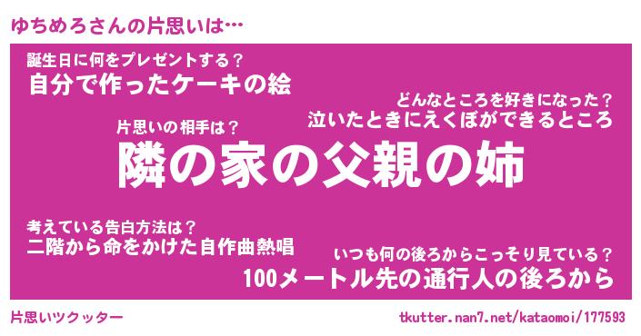 | 2回繰り返すあだ名 | 『ゆちゆち』『ゆゆちち』『うねうね』 |