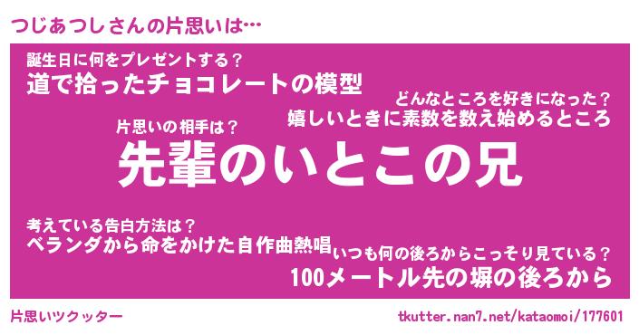 | 胡散臭い通販商品みたいなあだ名 | 『モテモテ間違いなし水晶球…その名も「つじあつし」』 |