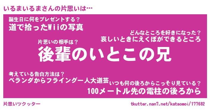 | 胡散臭い通販商品みたいなあだ名 | 『モテモテ間違いなし水晶球…その名も「いるまいるま」』 |