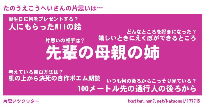 男性向けラノベタイトル風あだ名 | 『たのうえこうへいの憂鬱』 |