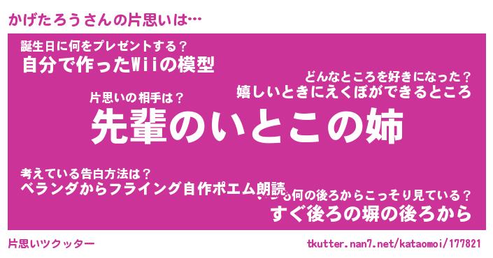 | 胡散臭い通販商品みたいなあだ名 | 『モテモテ間違いなし水晶球…その名も「かげたろう」』 |