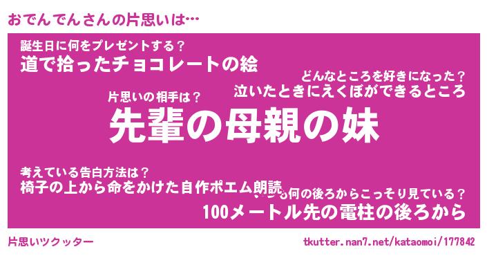 | 男性向けラノベタイトル風あだ名 | 『おでんでんの憂鬱』 |