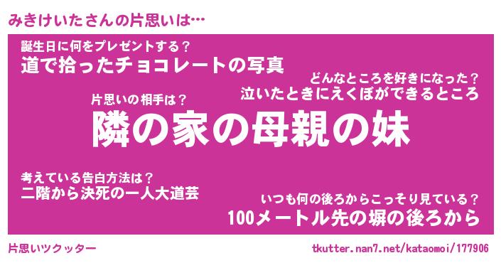 | ヘコむあだ名 | 『みきにー』『牛乳』『みきお』 |