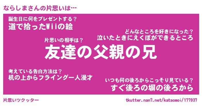| ヘコむあだ名 | 『ならにゅー』『牛乳』『ならっ子』 |