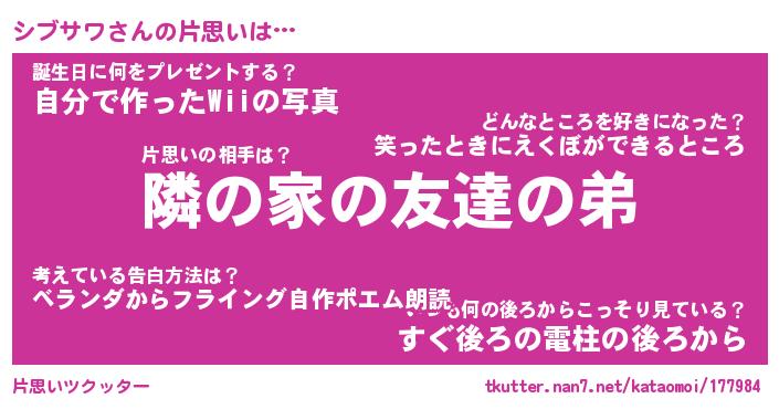 | 2回繰り返すあだ名 | 『シブシブ』『シシブブ』『なあなあ』 |