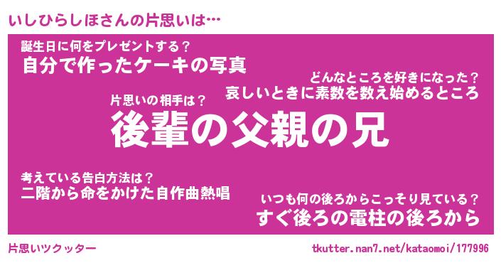 | ヘコむあだ名 | 『いしふぇ~』『レバニラ』『いしを』 |