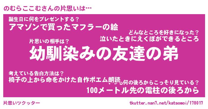 | 女子向けラノベタイトル風あだ名 | 『(仮)のむらここむのやんごとなき事情』 |
