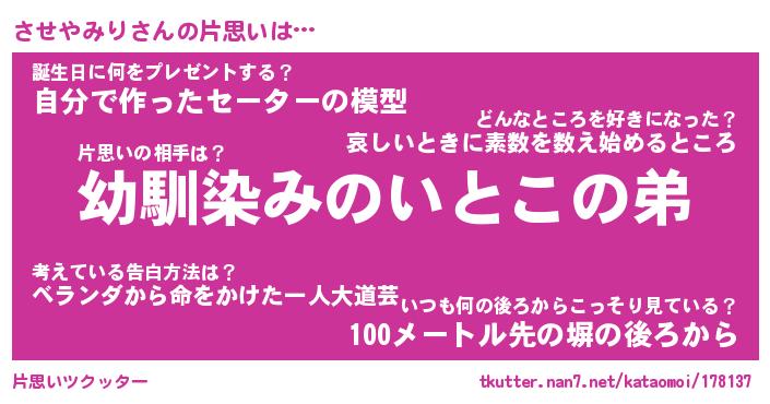 | ヘコむあだ名 | 『させにゅー』『つくし』『させ太郎』 |