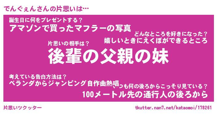 | ヘコむあだ名 | 『でんふぇ~』『なまこ酢』『でんを』 |