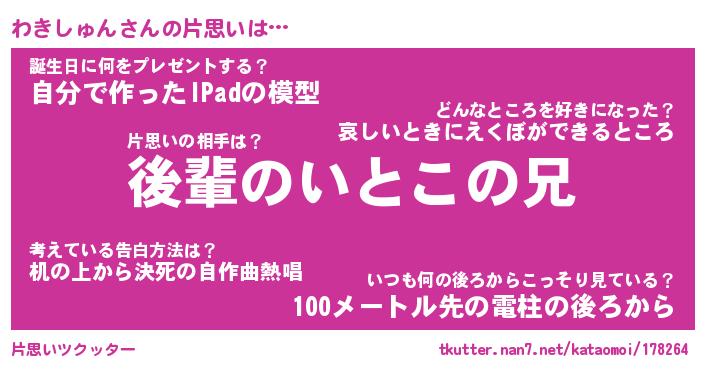 | ヘコむあだ名 | 『わきにゅー』『つくし』『わきっ子』 |
