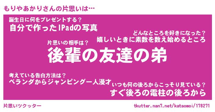 | ヘコむあだ名 | 『もりっふぃ~』『つくし』『もりお』 |