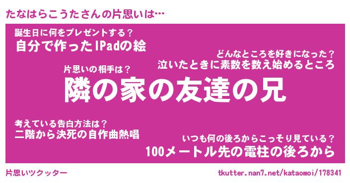 | 肩書あだ名 | 『たなはらこうた御曹司』 |